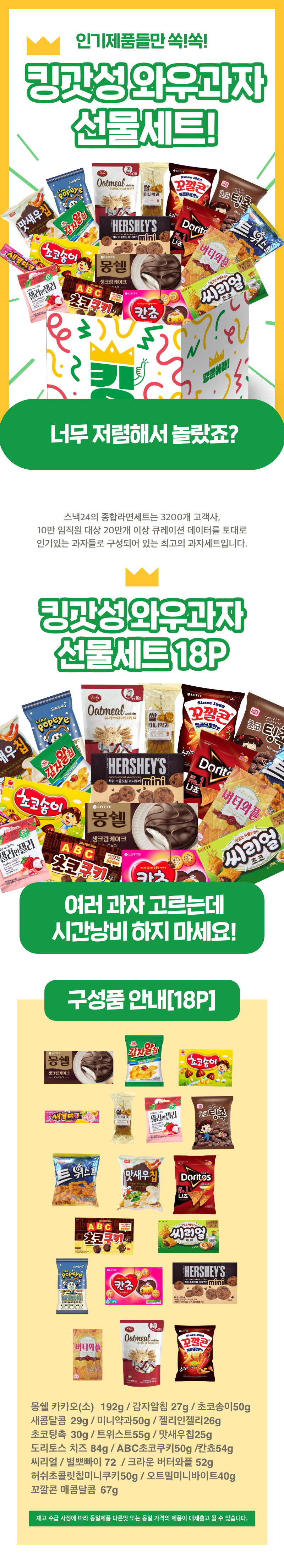 스낵24 인기스낵 킹갓성비 와우 과자선물세트 18P