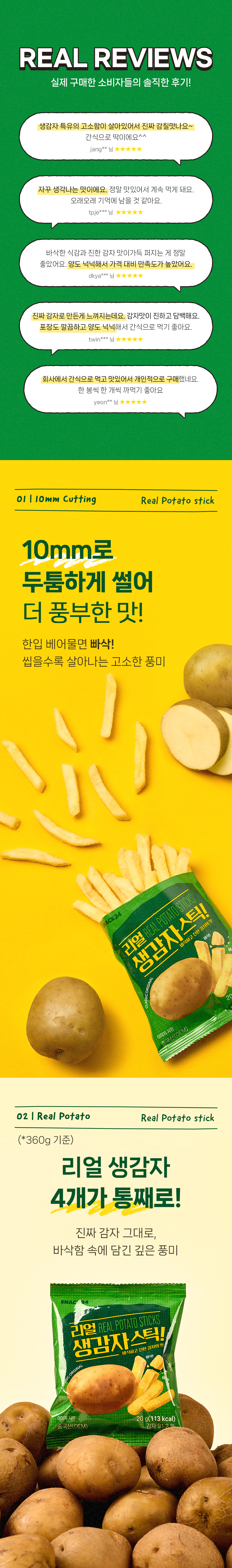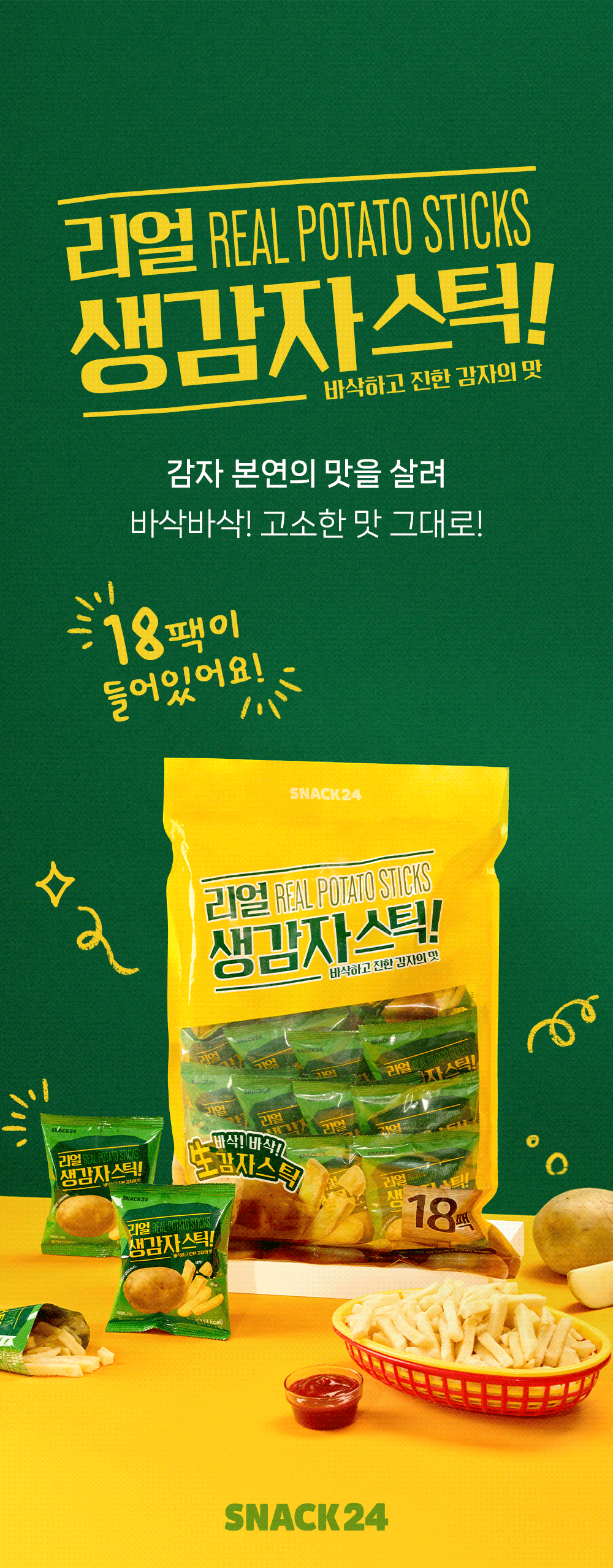 스낵24 리얼생감자스틱 포테이토스낵 대용량 과자 360g 6봉 1박스